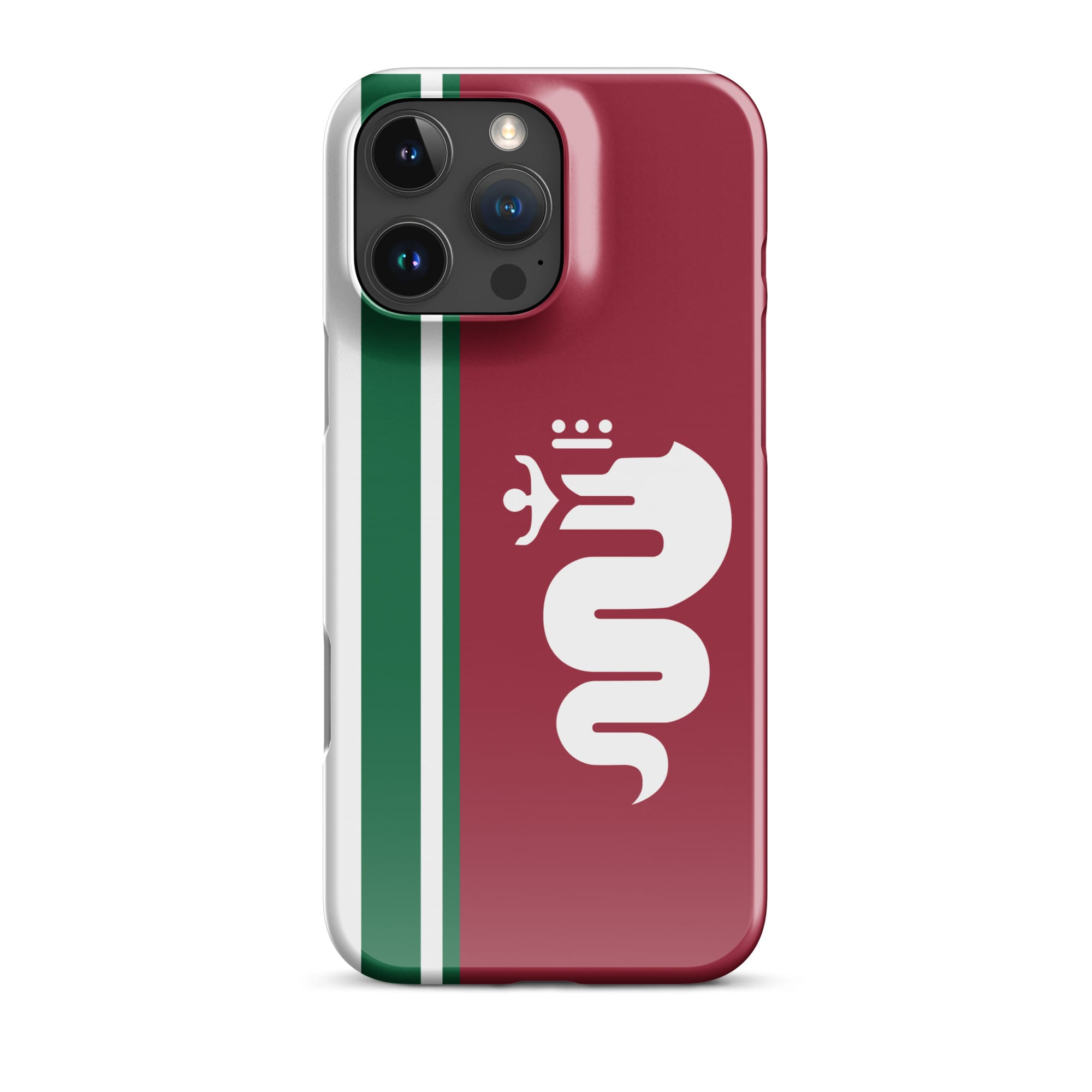 Introducing our Snap Case for iPhone, featuring a captivating graphic of the iconic Alfa Romeo logo with an Italian color scheme. This sleek and stylish case not only safeguards your device but also adds a touch of excitement to your everyday life.